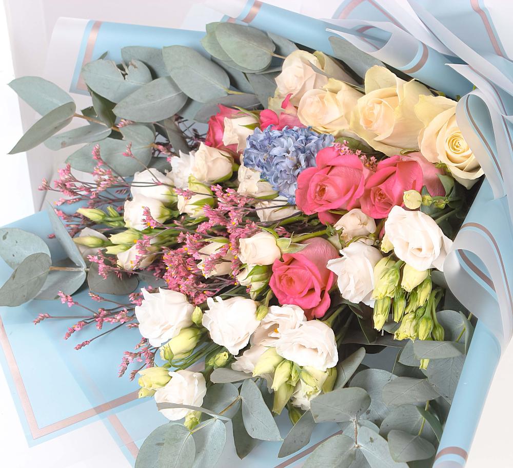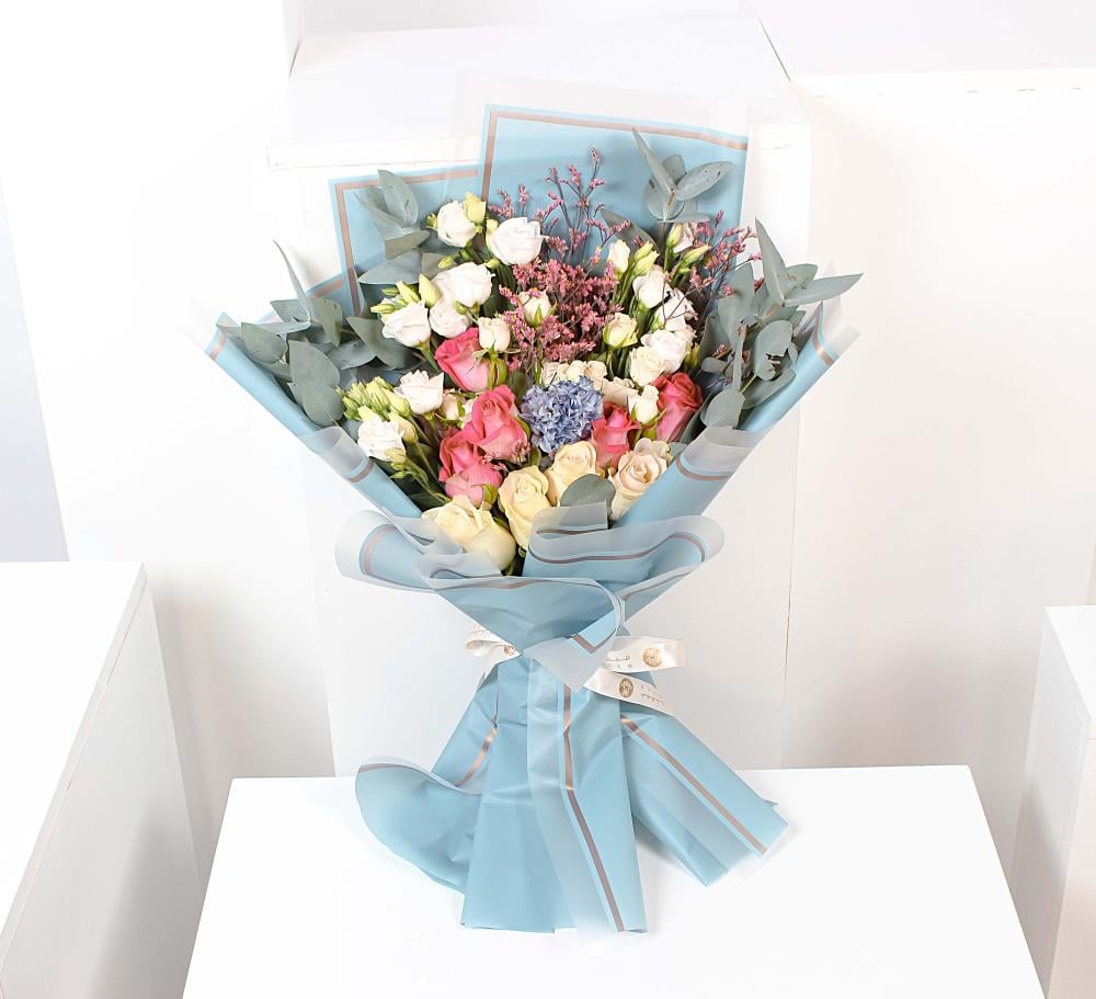 عن المنتج :باقة منسقة بمجموعة من الزهور الطبيعية