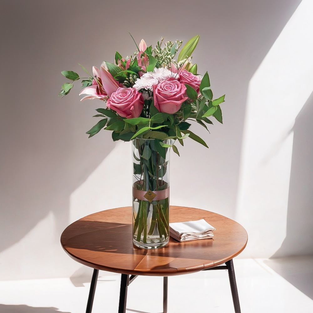 عن المنتج: فازة منسقة بمجموعة من الزهور الطبيعية