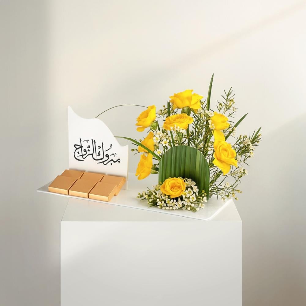 عن المنتج : قاعدة اكريلك منسقة بمجموعة من الزهور الطبيعية مع تشوكلت بستاني