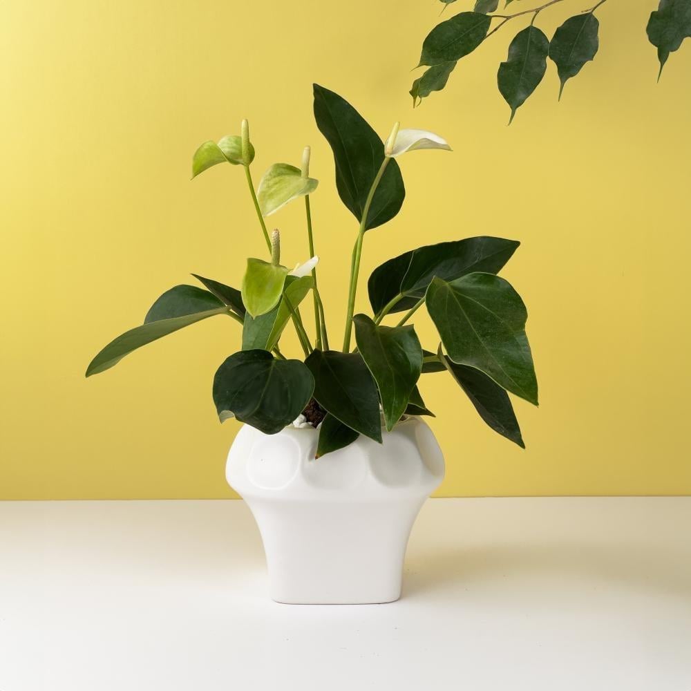 عن المنتج : نبتة الانتوريوم الابيض الداخلية الهولندي الفاخر بفازة سراميك