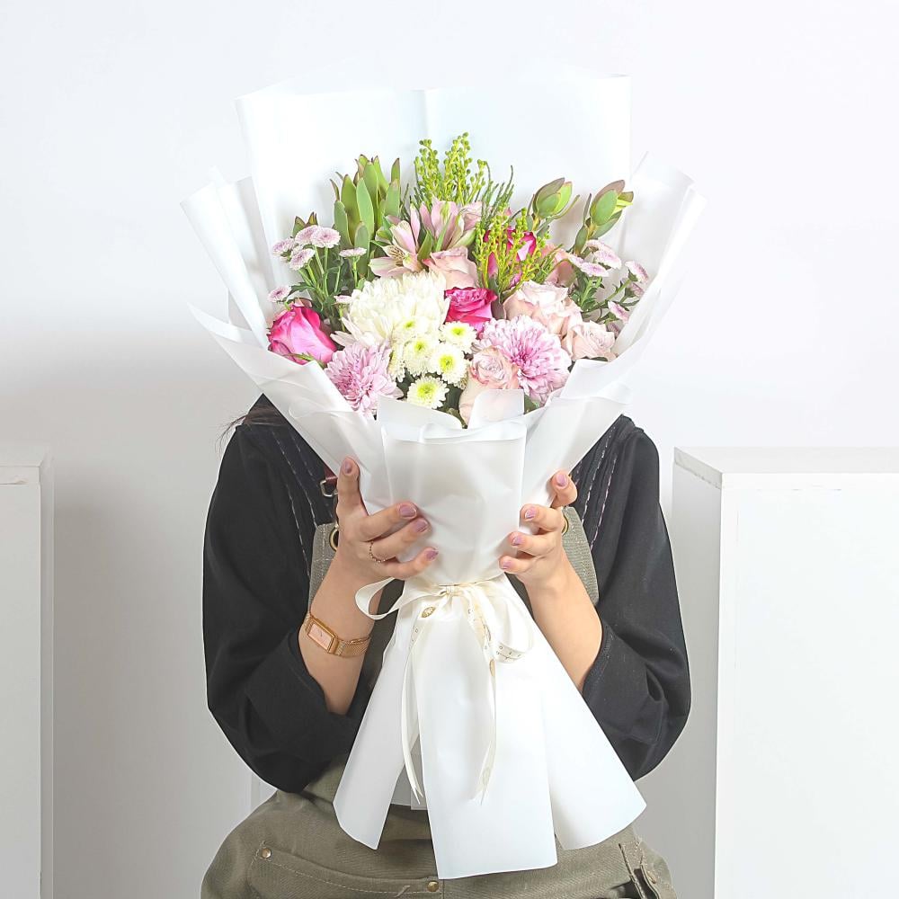 عن المنتج :باقة منسقة بمجموعة من الزهور الطبيعية